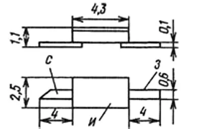 Масса бескорпусного транзистора не более 0,15 г, кристалла не более 0,0002 г.